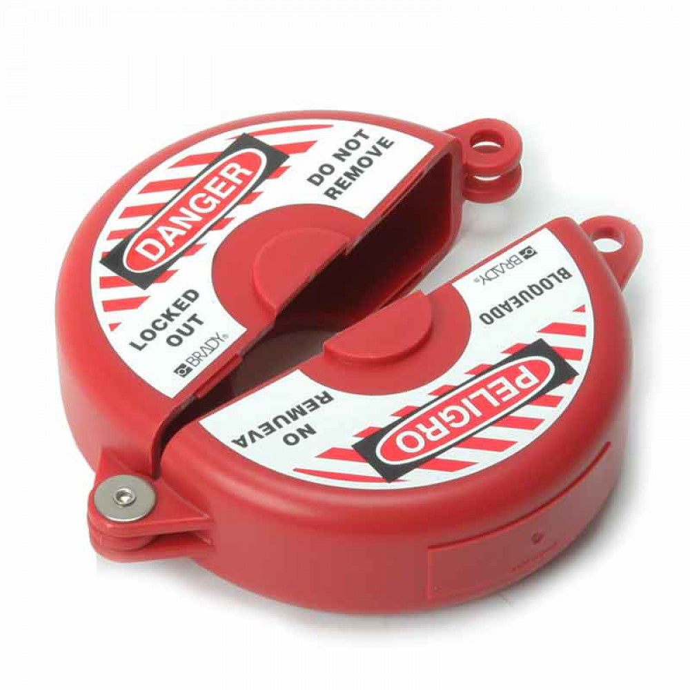 Made of injection-molded polypropylene, our gate valve lockouts are extremely rugged for superior impact and chemical resistance. They can easily withstand temperatures from -20°F to 300°F. Unique knockout center accommodates OS&Y or "rising stem" valves. Lockouts accept locks with shackles up to 3/8" diameter. 2.5" - 5"